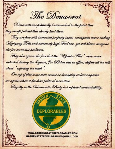 Garden State Deplorables formed January 2021 after the injustice done to the American people. Our group is based in one of the highest liberal populated states In the United States. Our goal is to Make New Jersey a place that is affordable and safe again. We will only support and promote the candidates that have the interest of the residents not the lobbyist. Right now New Jersey is known for Highest property taxes in America, High Crime, Extreme utility costs. Tolls and the road conditions . Not to mention the State is broke. Over 12,000 members and growing. Thank you for visiting.